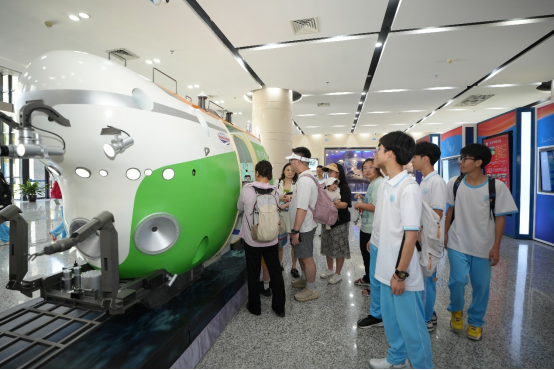 ????科技之光主題活動(dòng)通過科普講座、深海裝備展和深海VR體驗(yàn),向公眾展示深海探索的科技突破。郭威研究員帶來的《擁抱海洋,解密深海》科普講座,從認(rèn)識(shí)海洋講起,介紹了人類探索海洋的歷史,分享了擁抱海洋和解密深海而研制的各種“交通工具”,以及“搭乘”這些“交通工具”進(jìn)行全海深和全海域的探索,最后以學(xué)業(yè)發(fā)展和社會(huì)經(jīng)驗(yàn)雙重成長路徑為例,引導(dǎo)同學(xué)們樹立正確的人生觀、成才觀、擇業(yè)觀 ,?鼓勵(lì)同學(xué)們?cè)趭^斗中創(chuàng)造精彩人生。