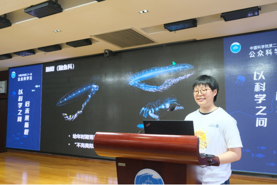 “自然之光”主題活動(dòng)通過科普講座、開放海洋生物繁育基地和海洋生物標(biāo)本展等,向公眾展示深海生物的發(fā)光奇跡。由林僅帶來的《誰在海底發(fā)光?》科普講座,向大家介紹了蝦、魷魚、深海魚類、發(fā)光細(xì)菌等具備發(fā)光能力的海洋生物,講述了深海熱液區(qū)的高溫?zé)焽梵w在噴出熱液的過程中會(huì)輻射出光,并與大家分享了深海生物發(fā)光和光能利用機(jī)制。