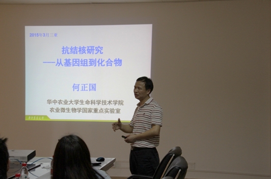 330日,應韓壯博士邀請,華中農業大學何正國教授到訪三亞深海所,并做了題為抗結核研究---從基因組到化合物的學術報告。