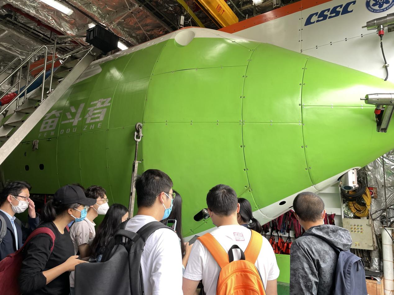 2月15日上午,同學們參觀了“探索一號”科考船和“奮斗者”號載人潛器,近距離走進深海探測的大國重器,并向潛航員學習了有關下潛的知識,和船長交流了出海科考經驗。