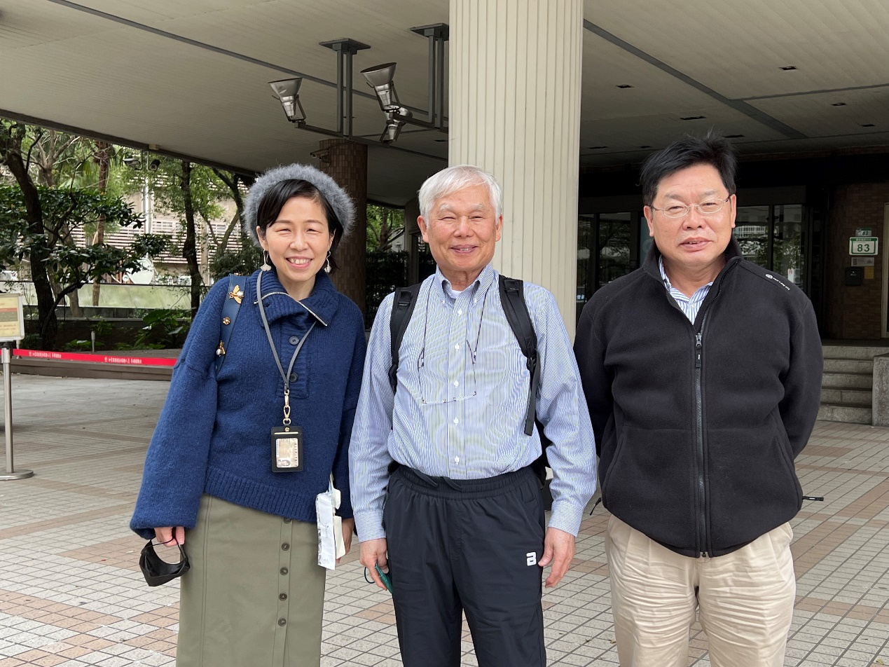 周義明研究員與劉雅瑄系主任(左)、前副校長羅清華(右)合影留念