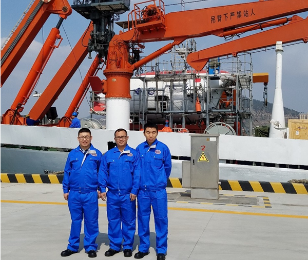 5月15日早上,水面支持系統人員在布放“蛟龍號”載人潛水器