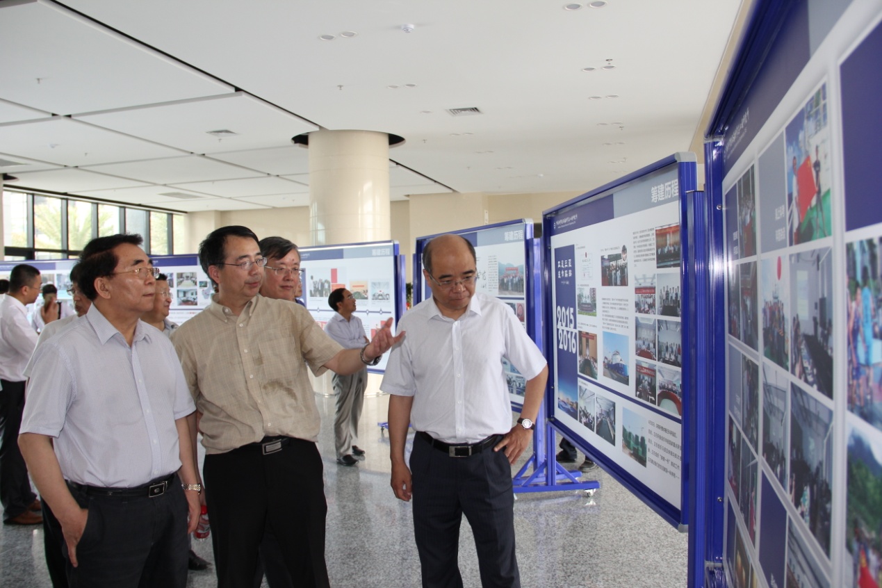 隨后,白春禮來到深海所科研園區,參觀了深海工程技術實驗室機加工中心、200Mpa深海超高壓模擬試驗裝置、目前國內同類水池中最深的綜合水池,以及深海所籌建歷程展等。在展廳觀看了“蛟龍號”深海下潛3D視頻。