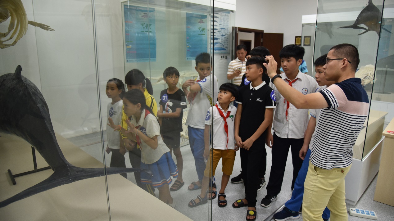 學(xué)生們參觀鯨豚標(biāo)本展示平臺(tái)