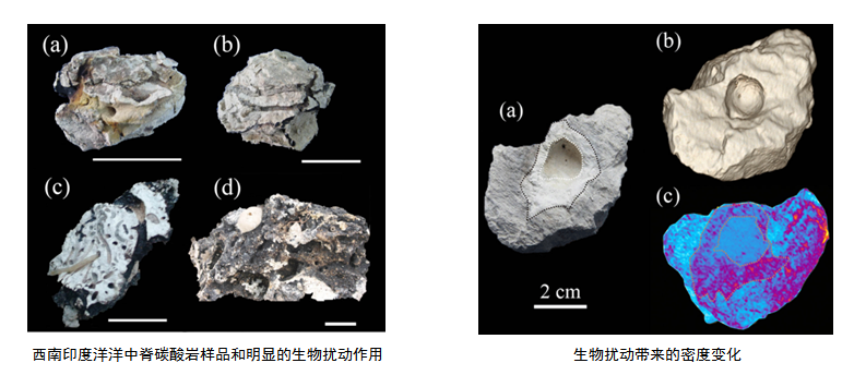 生物擾動作用是海洋沉積物中的常見現象,能夠促進沉積物和間隙水之間的物質交換,是沉積物地球化學元素重新分布的營力之一。為探索生物擾動作用和深海碳酸巖成巖作用之間的關系,中科院深??茖W與工程研究所彭曉彤研究員團隊對采集自西南印度洋洋中脊的深海碳酸巖進行了X射線斷層掃描、電子顯微鏡以及元素同位素地球化學研究。結果表明,該碳酸巖成巖過程伴隨的生物擾動作用促進了深海碳酸鹽礦物的溶解和重結晶過程,驅動了深海碳酸巖成巖作用的發生。以上認識不僅有助于拓展對深海碳酸巖成巖作用的理解,也加深了對深海底棲生物活動和地質過程互相作用的認識。