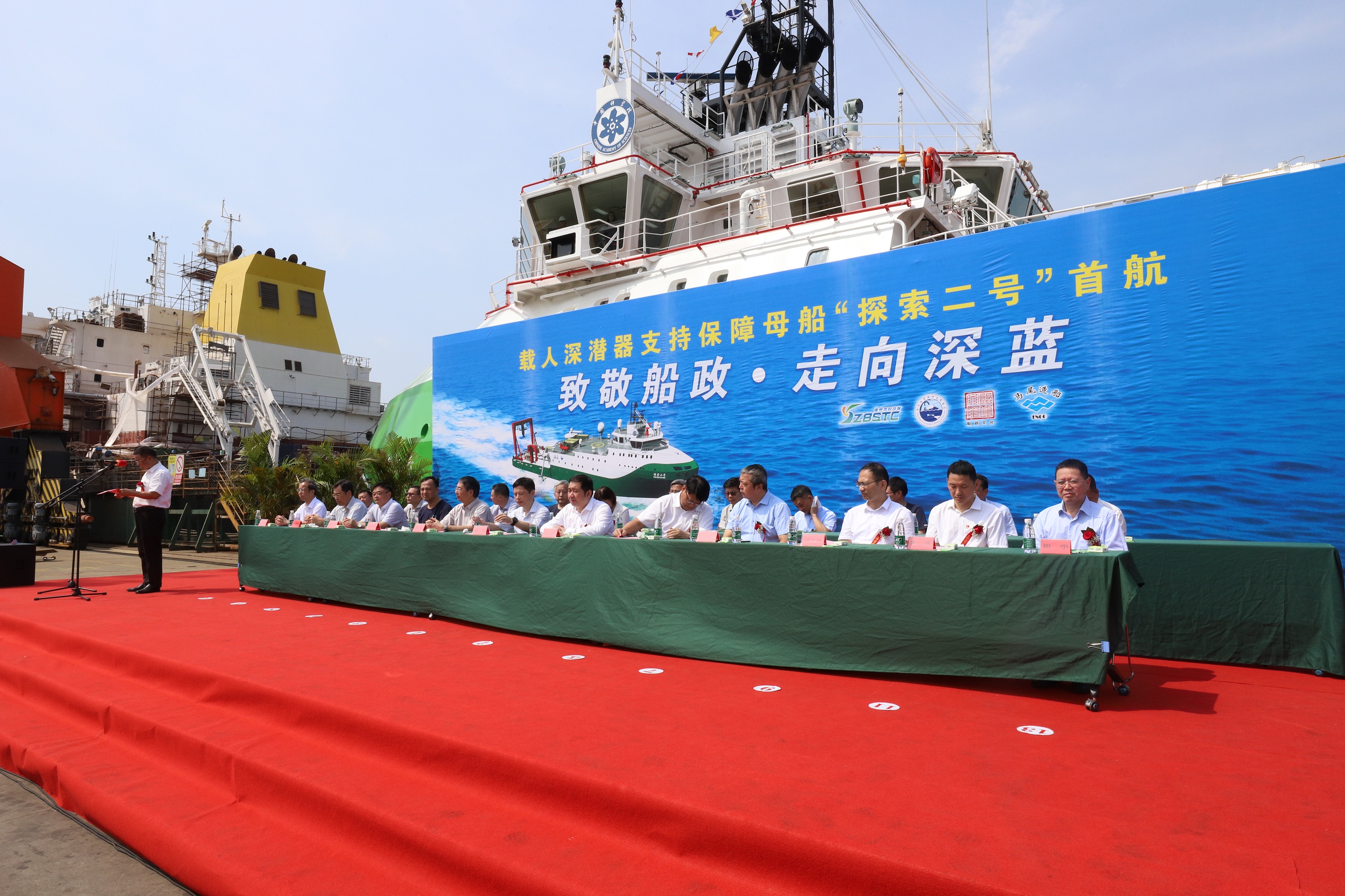 經過歷時18個月的適應性改造,我國首艘裝載國產化科考裝備的載人潛水器支持保障母船——“探索二號”科考船在福建馬尾造船廠完成所有改造項目。625日上午,在馬尾造船2#舾裝碼頭,“探索二號”在主題為“致敬船政·走向深藍”的活動中順利啟航。首航從福建馬尾造船廠出發,預計于628日抵達三亞南山港碼頭,為三亞崖州灣深海科技城的建設再添利器。