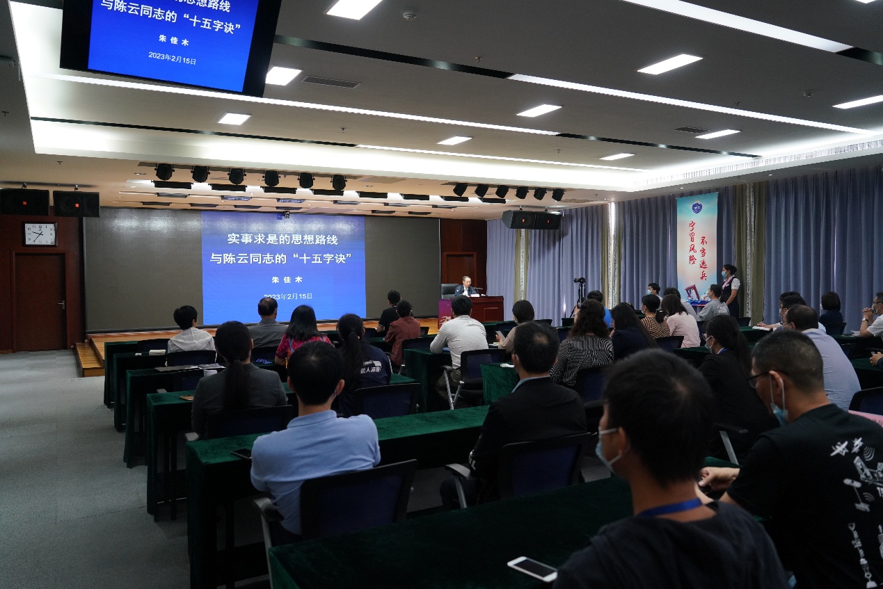 2月15日,中國科學院深海科學與工程研究所舉辦學習陳云思想方法的學術報告會邀請中華人民共和國國史學會會長、中國社會科學院“陳云與當代中國”研究中心理事長朱佳木教授作了題為《實事求是的思想路線與陳云同志的“十五字訣”》的報告