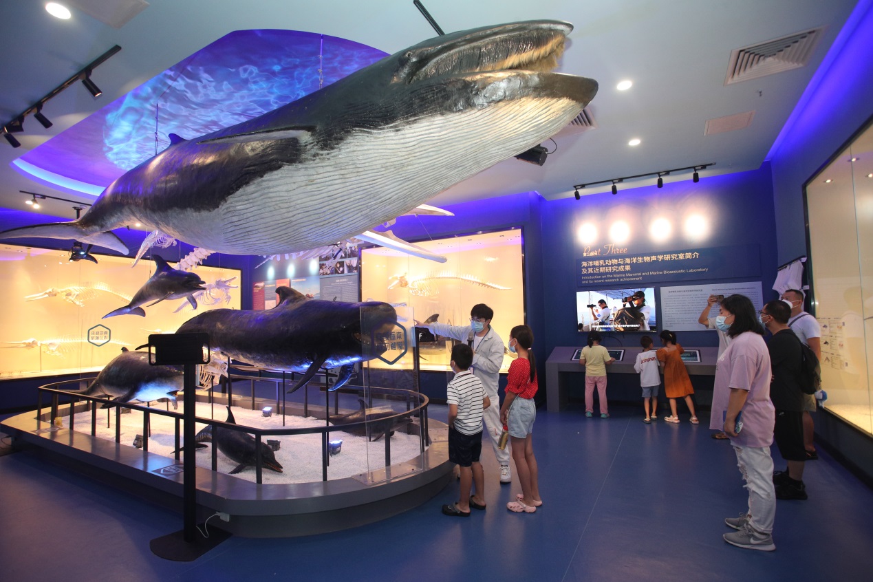 在鯨豚標(biāo)本館為公眾展示了大大小小、不同種類的鯨豚標(biāo)本,講述鯨豚的進(jìn)化過程,讓公眾仿佛置身于“大魚海棠”的奇幻世界中;海洋生態(tài)科普展則展示了鯨豚面臨的生存威脅,激發(fā)公眾保護(hù)海洋生態(tài)的熱情。