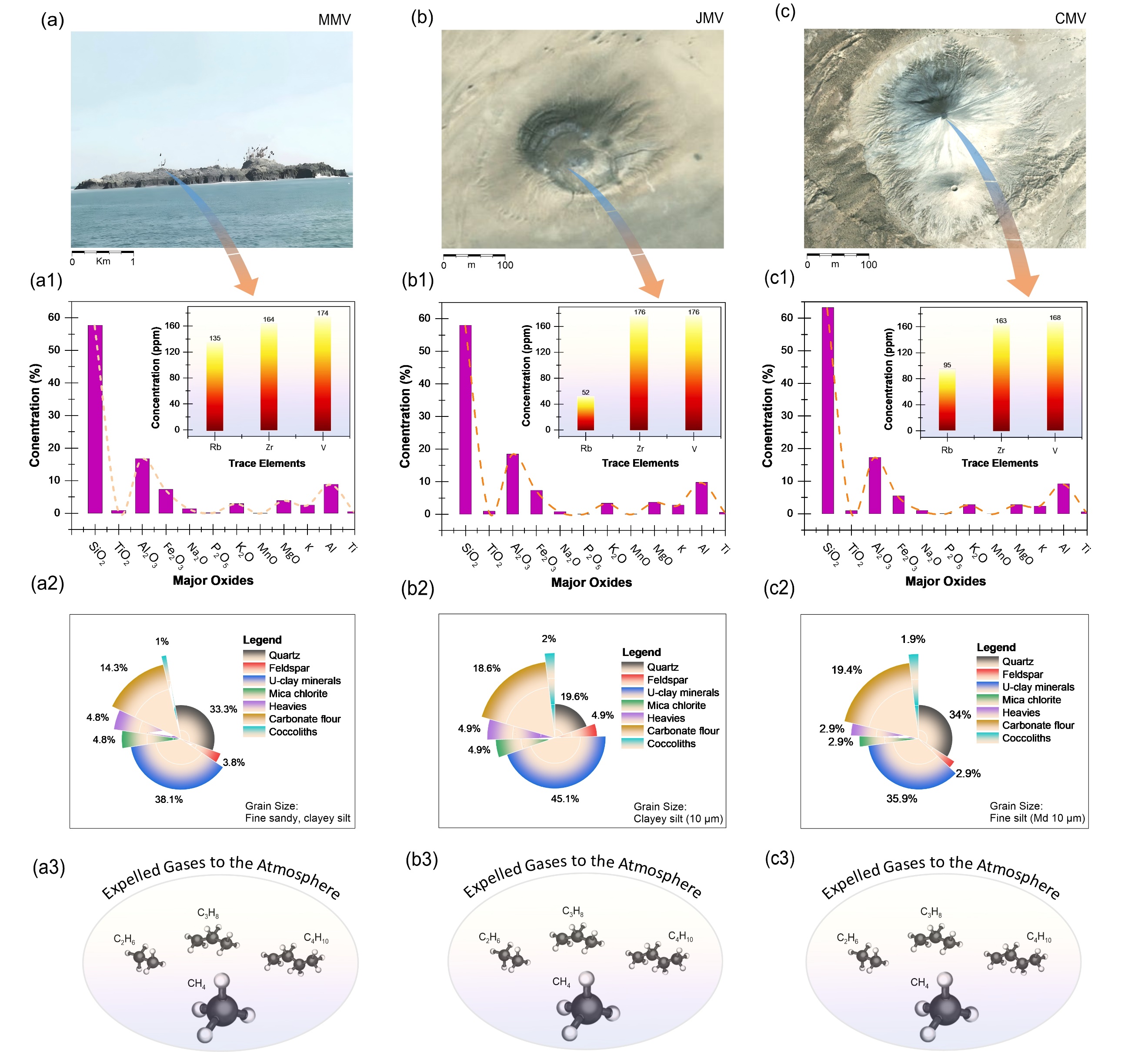 然而,關于富 CH? 泥火山的地質起源以及俯沖相關的地球化學和構造機制在活動俯沖邊緣中的作用仍存在關鍵空白。本研究采用多學科方法,結合地球物理、地質和地球化學數據集,提出了 Makran Subduction Zone 中富 CH? 泥火山的新演化模型。Makran Subduction Zone 因其獨特的地質特征(包括世界上最大的增生楔、高地震潛力和活躍的富 CH? 泥火山)而成為理想的研究模型系統。