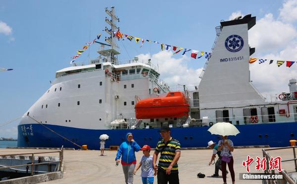 5月14日,海南三亞,中國科學院深海科學與工程研究所舉行大型公益性科普活動,向社會免費開放參觀“探索一號”科考船。三亞當地市民和中小學生踴躍報名參加,300多名幸運兒獲得機會登船參觀。“探索一號”科考船,是中國首艘4500米載人潛水器及萬米深潛作業的工作母船,其滿載排水量為6250噸,續航能力大于10000海里,自持力大于60天。“探索一號”將作為4500米載人潛水器母船及深淵科考和深海工程作業和海試通用平臺,已安裝有深海作業絞車系統、測深系統、沉積物采集裝置、地震空壓機系統,及門架、吊車等輔助機械。遵循專業運行、開放共享原則,未來將向全國乃至全世界科學家以及潛航員開放。中新社記者 尹海明 攝