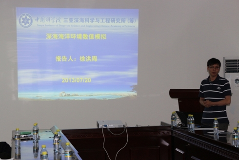 徐洪周做了題為“深海海洋環境數值模擬”的報告。從數值模擬的重要性、模式的選擇來介紹了前期的工作,并對未來海洋環境數值模擬實驗室的建設提出了需求和總體目標。