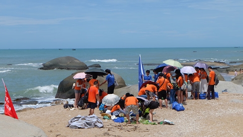 聯合藍絲帶海洋保護協會志愿者,開展凈海公益活動,是本次夏令營戶外活動的主題?;顒右孕〗M賽的形式進行,以清理最多海灘垃圾的小組獲勝。營員們在烈日中勞作,清理了所在海域的大部分海灘。通過開展此次活動,在所有營員的心中播下了一粒保護海洋生態環境的種子。最后,藍絲帶海洋保護協會的志愿者還為勝出的小組頒發了紀念品。之前,還組織參觀了海螺姑娘創意文化園、三亞深海所在建科研和生活園區,在創意文化園中,講解員為營員們介紹了海螺姑娘的美麗傳說,以及豐富的海洋科普知識。