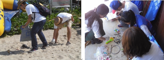 活動前,保護區(qū)管理處負責(zé)人為大家講解了海洋垃圾的危害及本次活動的意義,同時強調(diào)了凈灘時的注意事項。志愿者們待領(lǐng)取環(huán)保垃圾袋和手套等工具后,便開始分組行動,頂著炎炎烈日,不放過沙灘上每一個細微角落里的垃圾,“收獲”的喜悅溢于言表。經(jīng)過1個多小時的凈灘行動,志愿者共清理了14公斤垃圾,并將垃圾分類填寫了ICC卡片,后續(xù)將進行分類處理。隨后,大家還參觀了保護區(qū)管理處的珊瑚展覽館。