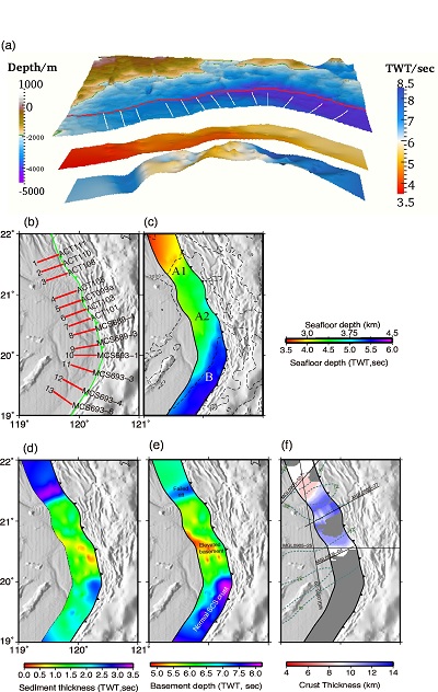圖1馬尼拉俯沖帶輸入板塊在板塊屬性、沉積物厚度和基底起伏上的不均一。