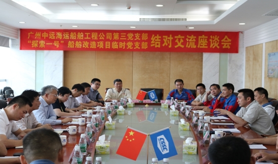 5月10日下午,中遠(yuǎn)海運(yùn)(廣州)有限公司黨委書記金義松帶領(lǐng)船舶工程公司第三黨支部一行9人與“探索一號”二期改建項目臨時黨支部進(jìn)行座談交流,參觀了船舶改造現(xiàn)場。