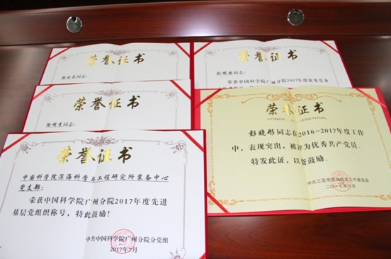 工程部黨支部、裝備中心黨支部分別榮獲三亞市和廣州分院先進基層黨組織榮譽稱號;發(fā)強、劉明國分別榮獲三亞市和廣州分院優(yōu)秀黨務工作者榮譽稱號;彭曉彤和吳時國、徐明秀、徐云武分別榮獲三亞市和廣州分院優(yōu)秀共產(chǎn)黨黨員榮譽稱號。