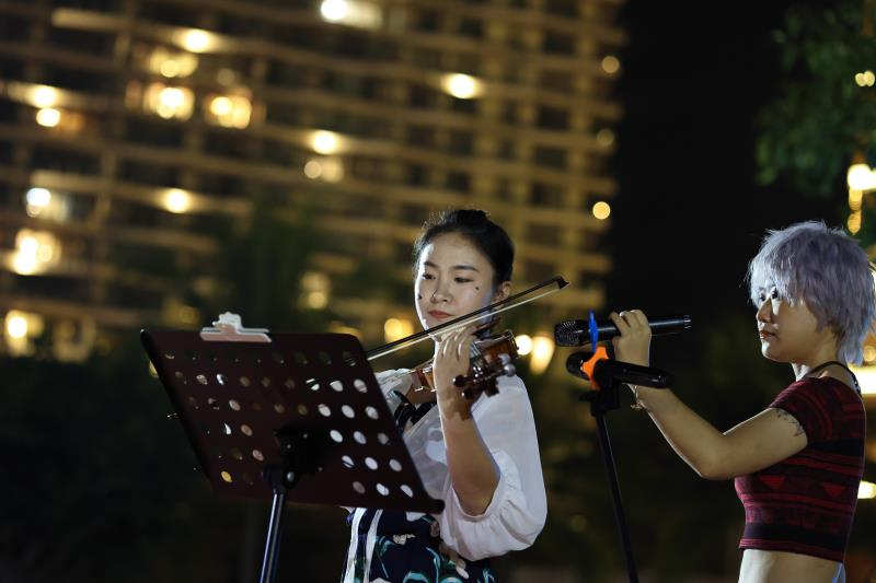 隨后,工程部黃文健演唱了歌曲《天高地厚》,潛航員楊雨辰進行了小提琴串燒彈奏,悠揚的小提琴在草地上久久回蕩。接下來,探索一號船和探索二號船團隊分別帶來了歌曲《中國人》《真心英雄》《可可托海的牧羊人》《一生中最愛》,讓全場感受到了探索團隊的力量。諾亦騰的吳祎和物業分別帶來《Melody》和《不放棄》歌曲,人事教育處合唱了動聽的《我只在乎你》,海裝中心唐古拉山主任帶來了《暗香》歌曲。