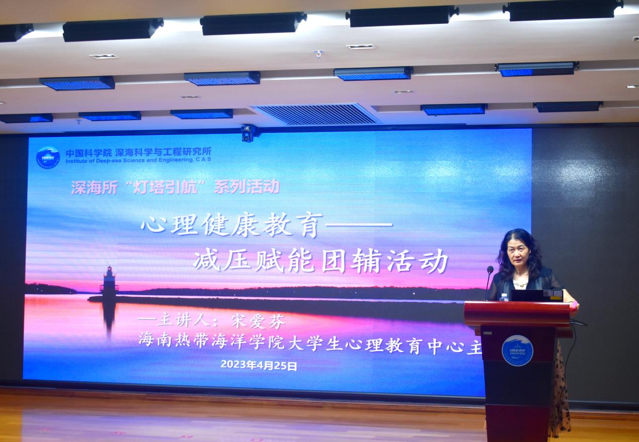 為關(guān)愛深海所研究生心理健康、緩解學(xué)生心理壓力,4月25日下午,人事教育處特邀海南熱帶海洋學(xué)院大學(xué)生心理教育中心主任宋愛芬教授來所開展“燈塔引航”系列活動(dòng)第十三講。