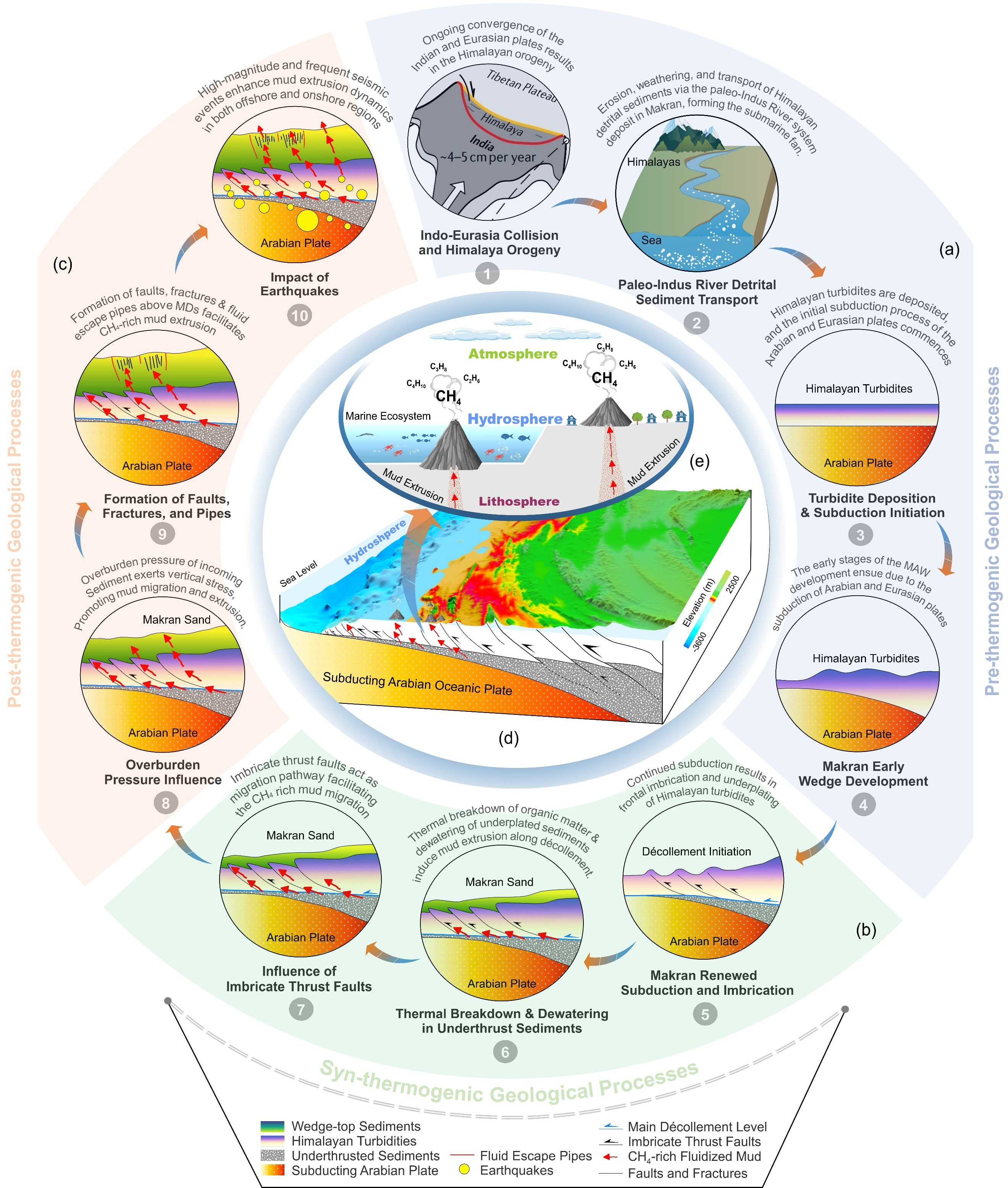 圖6.?Makran Subduction Zone 中富 CH? 泥火山的地質演化模型