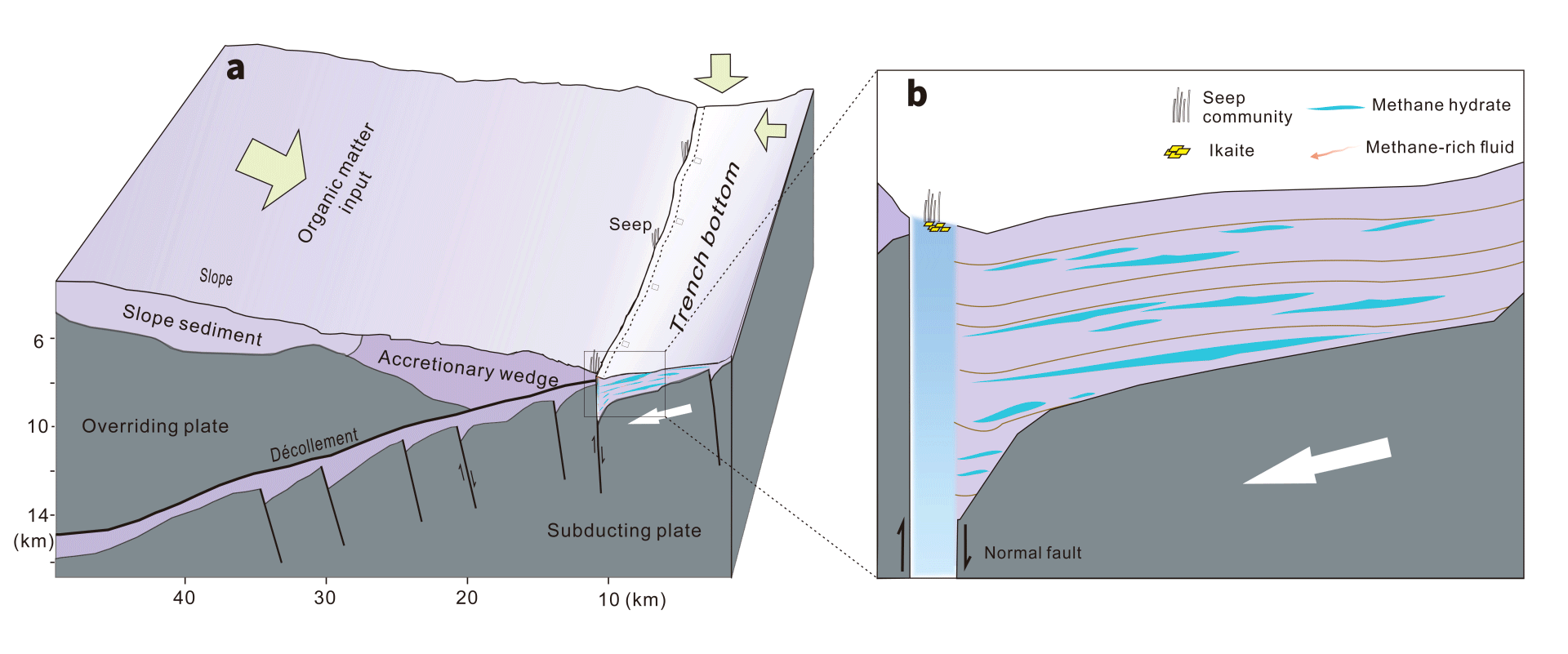 該研究對理解地球深部碳循環(huán)具有深遠(yuǎn)意義。通過地球化學(xué)分析,研究人員發(fā)現(xiàn)這些環(huán)境中的甲烷實(shí)際上是由沉積層深處的微生物活動產(chǎn)生的。這一結(jié)果表明,在深淵海底之下還存在著一個(gè)前所未知的、龐大活躍的深部生物圏,不斷將由沉降有機(jī)質(zhì)分解而來的二氧化碳轉(zhuǎn)化為甲烷。因此,這一過程可能封存了大量的從上層海洋沉降的有機(jī)碳,并以天然氣水合物等形式在深淵海底形成規(guī)模巨大的甲烷儲庫,挑戰(zhàn)了傳統(tǒng)的深海碳循環(huán)和碳收支模式。